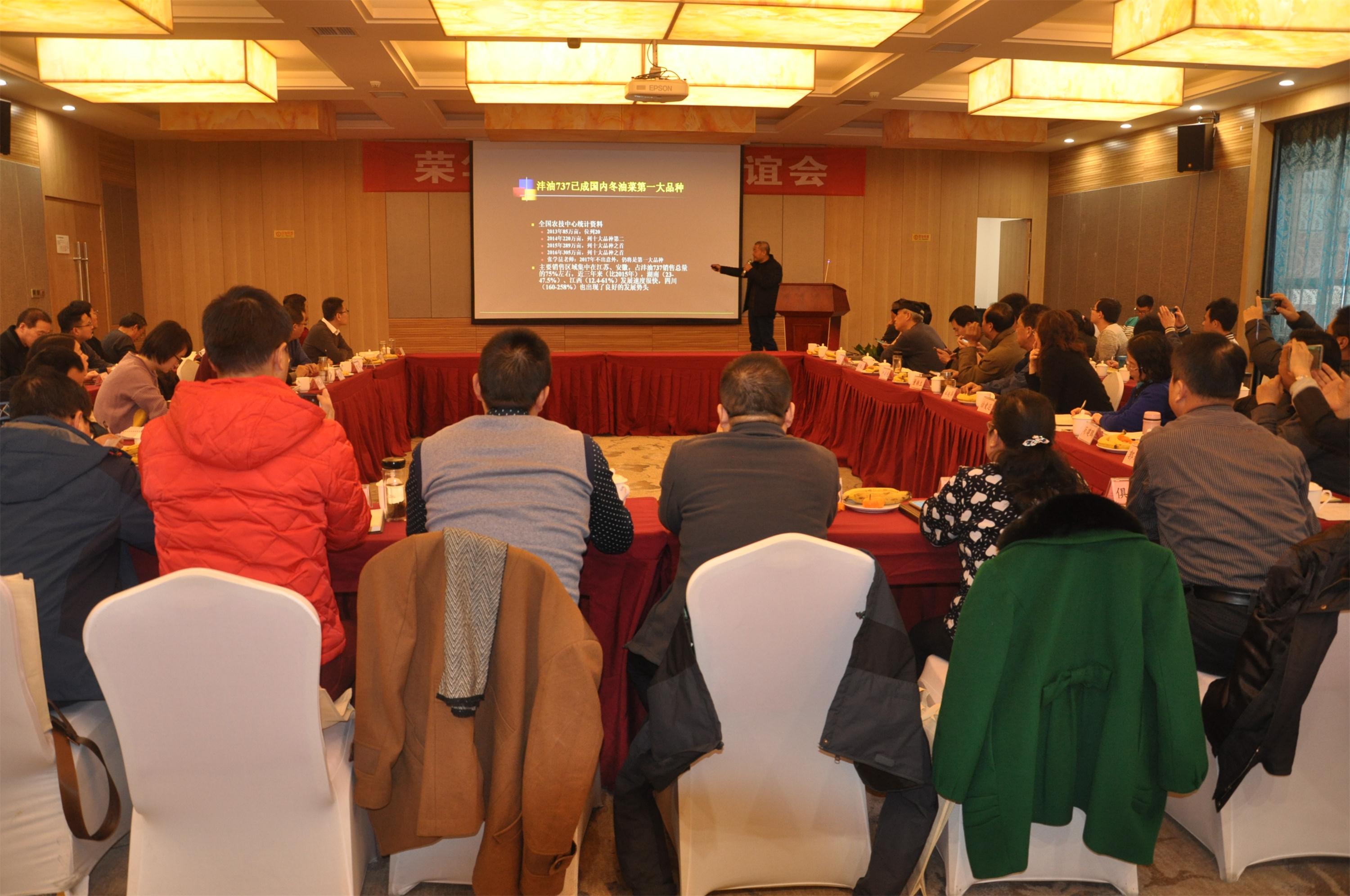 2017年12月28-29日,陜西榮華農(nóng)業(yè)科技有限公司在楊凌鳳凰大酒店召開首屆科企聯(lián)誼會(huì),參會(huì)的有:陜西省雜交油菜研究中心、西北農(nóng)林科技大學(xué)農(nóng)學(xué)院油菜育種室、咸陽農(nóng)科院、寶雞市農(nóng)科院、漢中市農(nóng)科院的有關(guān)專家和公司相關(guān)人員共40人。