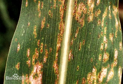 癥狀 玉米銹病是我國(guó)華南、西南一帶重要病害。主要侵染葉片,嚴(yán)重時(shí)也可侵染果穗、苞葉乃至雄花。初期僅在葉片兩面散生淺黃色長(zhǎng)形至卵形褐色小膿疤,后小皰破裂,散出鐵銹色粉狀物,即病菌夏孢子;后期病斑上生出黑色近圓形或長(zhǎng)圓形突起,開(kāi)裂后露出黑褐色冬抱子。